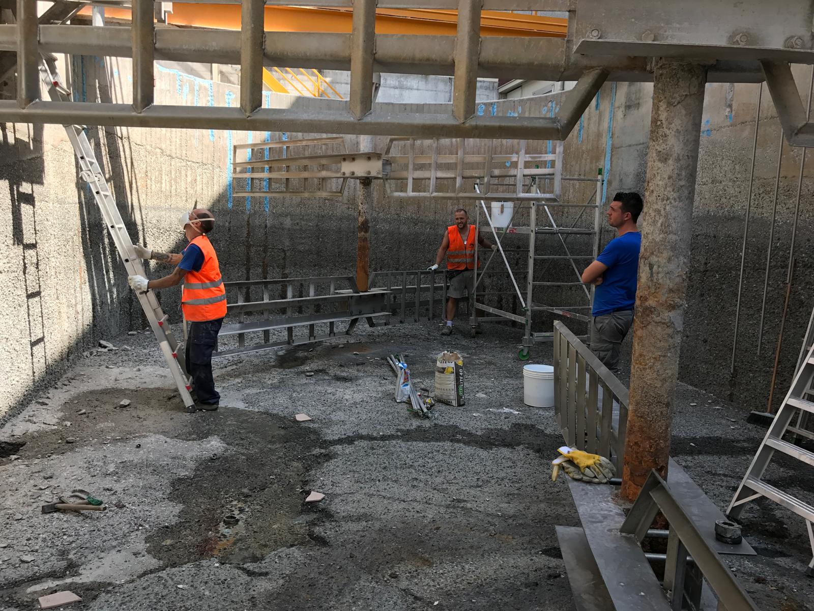 Sabbiature, ripristino del calcestruzzo e trattamento dei ferri di armatura, rivestimenti protettivi (acqua potabile, antincendio, olii…) Ripristino di SILOS a contenuto alimentare con l’ausilio di resine specifiche e tessuti in fibra di vetro.