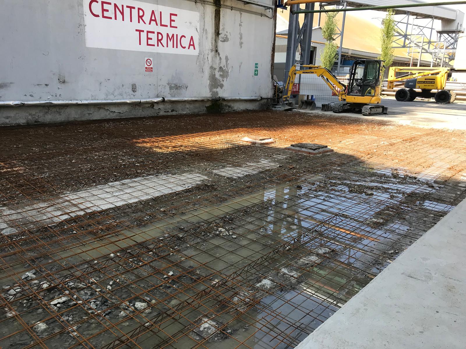 Demolizioni a sezione obbligata, sbancamenti, tagli e carotaggi. Progettazione e realizzazione nuove pavimentazioni industriali e platee.